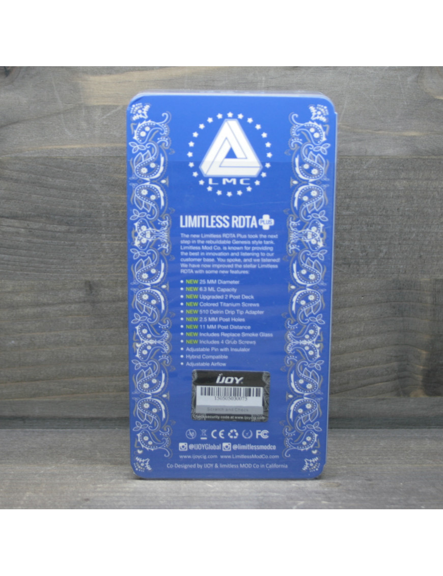 Бако-дрипка IJOY Limitless RDTA Plus является ярким обновлением модельного ряда, результатом совместным трудов американской компании Limitless Mods и китайского бренда iJoy.