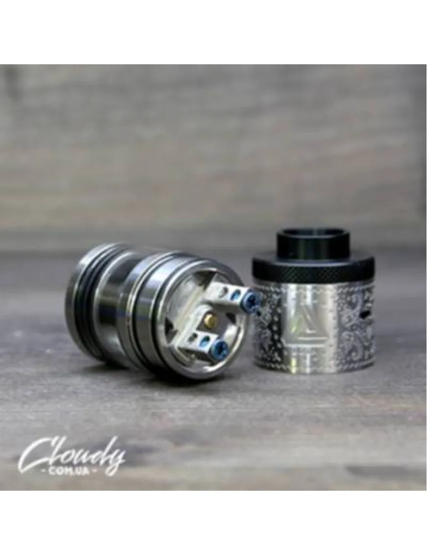 Верхнюю часть занимает чафкэп, мундштук выступает на 5 мм, за счет внутреннего диаметра отверстия 12,3 мм возможна установка широких дрип-типов от других производителей. Переходник из комплекта под 510 формат отличается большой высотой, что позволяет использовать его в качестве самостоятельного мундштука.