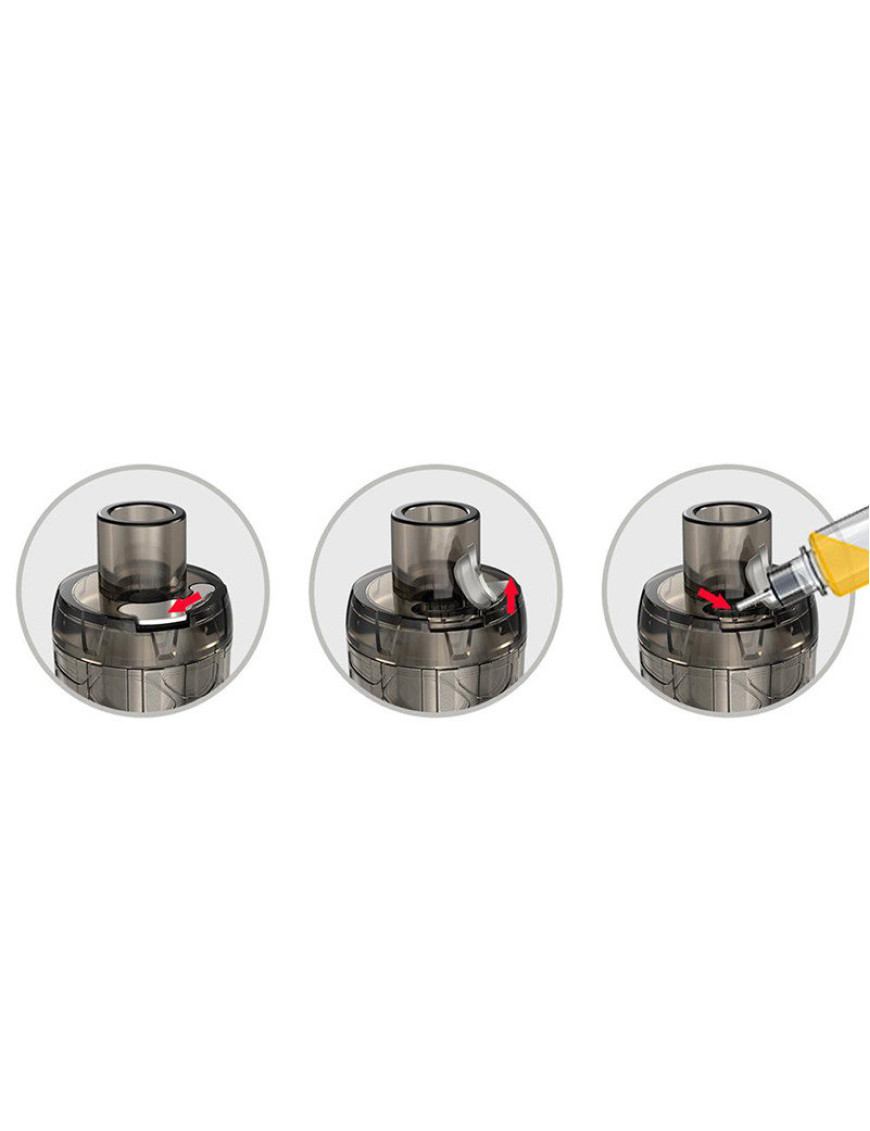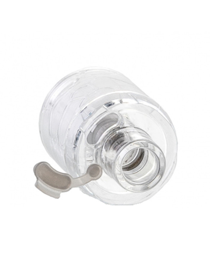 Заправка — сверху, отверстие для добавления жидкости — одно, довольно просторное, закрыто силиконовой заглушкой. Кольцо настройки обдува можно спутать с колбой бака, ведь оно занимает все пространство от верхней крышки, до базы.