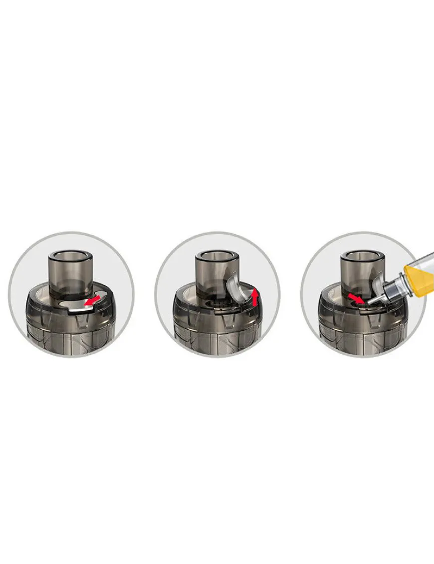 Дрип тип близок к 810 формату, но не съемный, объединен с верхней крышкой и емкостью для хранения запаса жидкости.