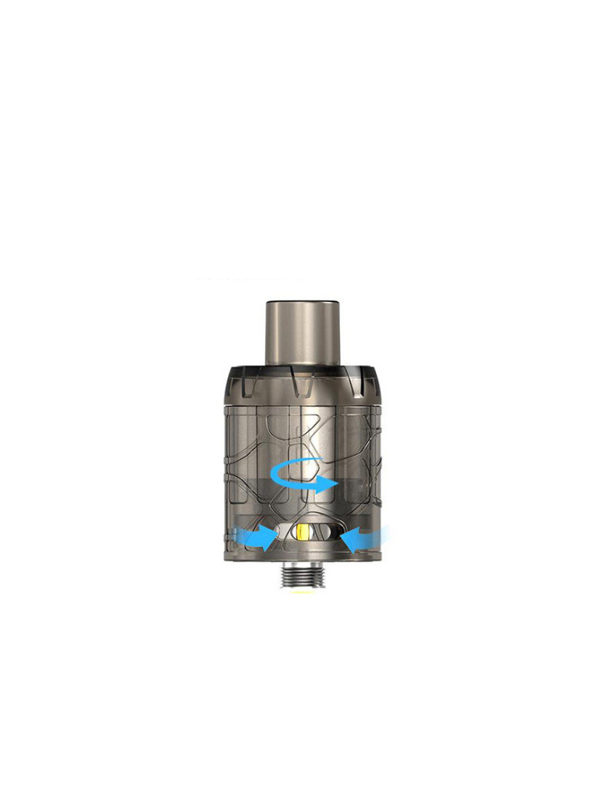 За производство пара отвечает испаритель на сетке, сопротивление которого 0.15 Ома. Это его стальной коннектор, с не настраиваемым центральным контактом, выступает наружу в нижней части базы. База из пластика, с отверстием для коннектора испарителя и прорезанными слотами для настройки обдува по бокам. Все соединения уплотнены резиновыми кольцами, что позволяет не опасаться протечек.