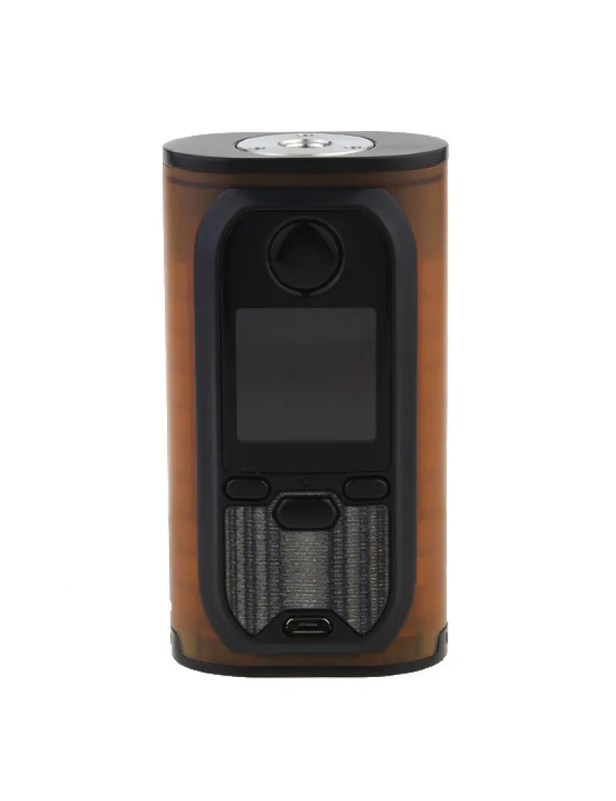Корпус боксмода обладает средними размерами в сегменте двухбатарейных модов: 89.5 мм в высоту, 48 мм в ширину и 30.7 мм в “глубину”. При этом 510 коннектор расположился практически посередине верхней крышки, благодаря чему есть возможность разместить атомайзеры до 28 мм без бортика, а чтобы защитить покрытие, предусмотрена большая стальная посадочная площадка.