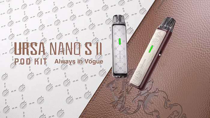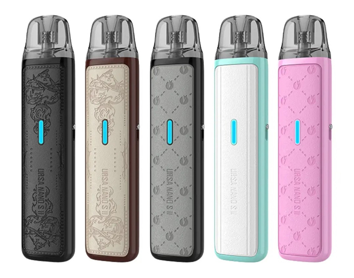 Lost Vape Ursa Nano S2 10th Anniversary Edition Pod Kit 1000 мАч - компактная POD система, оснащенная аккумулятором средней емкости, рассчитанная на работу на постоянной мощности и предназначенную для использования сменных картриджей со встроенными испарителями. Устройство имеет форму приплюснутого стика, очень компактное и легкое, сделано из глянцевого пластика, с вставками из эко-кожи. Корпус выглядит максимально просто: название фирмы сзади, название модели спереди и индикатор по центру. В элементах конструкции также всё очень скромно: на одном из боковых торцов порт зарядки через Type-C и отверстие забора воздуха, на втором торце ползунок регулировки затяжки. Никаких кнопок нет, устройство работает только от затяжки. Питание Ursa Nano S2 обеспечивается встроенным аккумулятором, емкостью 1000 мАч, зарядка производится при помощи разъема USB Type-C, током 1А. В комплект устройства входит один картридж из линейки Ursa V2 со встроенным испарителем на 0.8 Ом и увеличенным сроком службы, а также емким баком на 2.5 мл. Осталась поддержка и предыдущих картриджей серии Ursa.