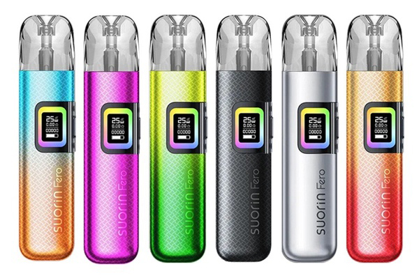 Suorin Fero Pod Kit 1000 мАч - компактная POD система, оснащенная мощным аккумулятором, регулировкой затяжки и рассчитанная на использование сменных картриджей со встроенными испарителями. Корпус устройства выполнен из алюминиевого сплава в виде стика с закругленными углами. В качестве декора использован симпатичный геометрический узор и градиентный окрас некоторых версий. Панель управления богата единственной клавишей, однако активация достигается в том числе и по затяжке. Помимо этого имеется небольшой монохромный дисплей, опоясанный оригинальной RGB-лентой. Питание Suorin Fero обеспечивается встроенным аккумулятором, емкостью 1000 мАч. Зарядка аккумулятора производится при помощи разъема USB Type-C, расположенного на одной из боковых граней устройства, током 2А. Управляющий чипсет работает в единственно доступном режиме – вариватт и имеет скромный диапазон настройки мощности до 25Вт. О регулировке интенсивности затяжки создатели не забыли – аккуратный ползунок расположен на противоположной стороне корпуса. Картриджная система новая, это резервуары хорошей емкости на 3 мл, с боковой не быстродоступной заправкой. В комплекте Suorin Fero представлены два картриджа со встроенными сеточными испарителями с сопротивлением 0.6 и 0.8 Ом.