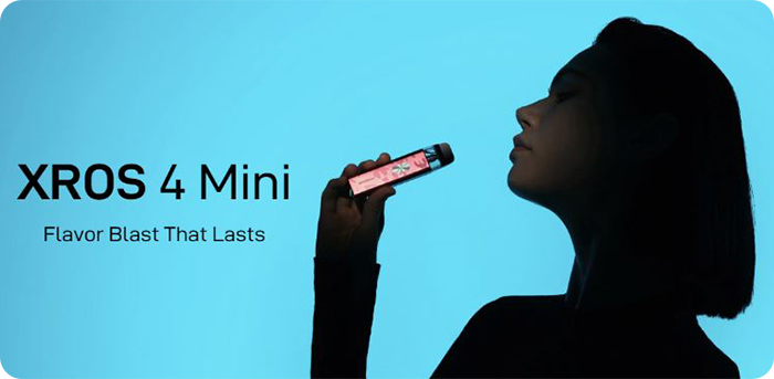 Vaporesso XROS 4 Mini 1000 мАг - компактная POD система, оснащенная мощным аккумулятором и рассчитанная на использование картриджей серии XROS.Форм-фактор новинки – это все такой же прямоугольный стик из алюминиевого сплава со скругленными гранями, корпус покрывает рельефная поверхность, улучшающая тактильные ощущения.Размеры POD системы достаточно скромные – 107.5 х 24 х 14.12 мм, поэтому он будет практически не заметен в кармане.На лицевой стороне девайса расположен небольшой светодиодный индикатор, сигнализирующий о состоянии электронной сигареты и заряде батареи: индикатор горит зеленым при 100%-70% заряда, синим – при 70%-30%, а красный цвет индикатора означает, что заряда осталось не больше 30%.На противоположной стороне корпуса находится ползунок регулировки обдува. Регулировка происходит плавно, без рывков, но ползунок двигается туго. Питание Vaporesso XROS 4 Mini обеспечивается встроенным аккумулятором, емкостью 1000 мАч, а это довольно приличный показатель. Зарядка аккумулятора производится при помощи разъема USB Type-C, расположенного на нижнем торце устройства, током 1А. Активация устройства происходит автоматически, при затяжке. В комплект Vaporesso XROS 4 Mini входит один картридж XROS Series со встроенным сеточным испарителем на 0.4 Ом. Картридж вмещает до 3 мл жидкости, оснащен защитой от протечек по фирменному стандарту SSS и модернизированной технологией COREX 2.0, которая обеспечивает более интенсивный вкус и увеличивает срок службы испарителя. Для заправки картриджа необходимо снять мундштук и в небольшое отверстие с обратным клапаном залить 3 мл жидкости. Так же можно использовать и другие картриджи серии XROS.