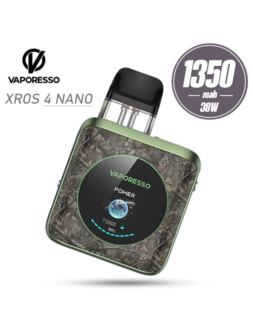 Vaporesso XROS 4 Nano Pod Kit 1350 мАч - компактная POD система c вариативной мощностью, оснащенная мощным аккумулятором и цветным интерфейсом с различными темами. Корпус устройства выполнен из алюминиевого сплава в формате компактного квадрата с плавным скругленным силуэтом. На лицевой стороне расположен большой круглый TFT дисплей с анимацией. Регулировка интенсивности затяжки реализована с помощью аккуратного ползунка на одной из боковин устройства. На другой боковине расположена кнопка активации и современный разъем USB Type-C. Питание Vaporesso XROS 4 Nano обеспечивается встроенным аккумулятором, емкостью 1350 мАч, а это довольно приличный показатель. Зарядка аккумулятора производится при помощи разъема USB Type-C, током 2А. Активируется POD система по затяжке либо посредством нажатия универсальной кнопки, с помощью которой можно еще управлять девайсом и анимацией. Два нажатия активируют меню настроек, три — регулируют мощность, четыре — блокируют или разблокируют устройство, а пять кликов включают или выключают его. В комплекте Vaporesso XROS 4 Nano представлены два картриджа XROS Series COREX 2.0 со встроенными сеточными испарителями на 0.4 и 0.8 Ом. Картриджи вмещают до 3 мл жидкости, оснащены защитой от протечек по фирменному стандарту SSS и модернизированной технологией COREX 2.0, которая обеспечивает более интенсивный вкус и увеличивает срок службы испарителя. Для заправки картриджа необходимо снять мундштук и в небольшое отверстие с обратным клапаном залить 3 мл жидкости. Так же можно использовать и другие картриджи серии XROS.