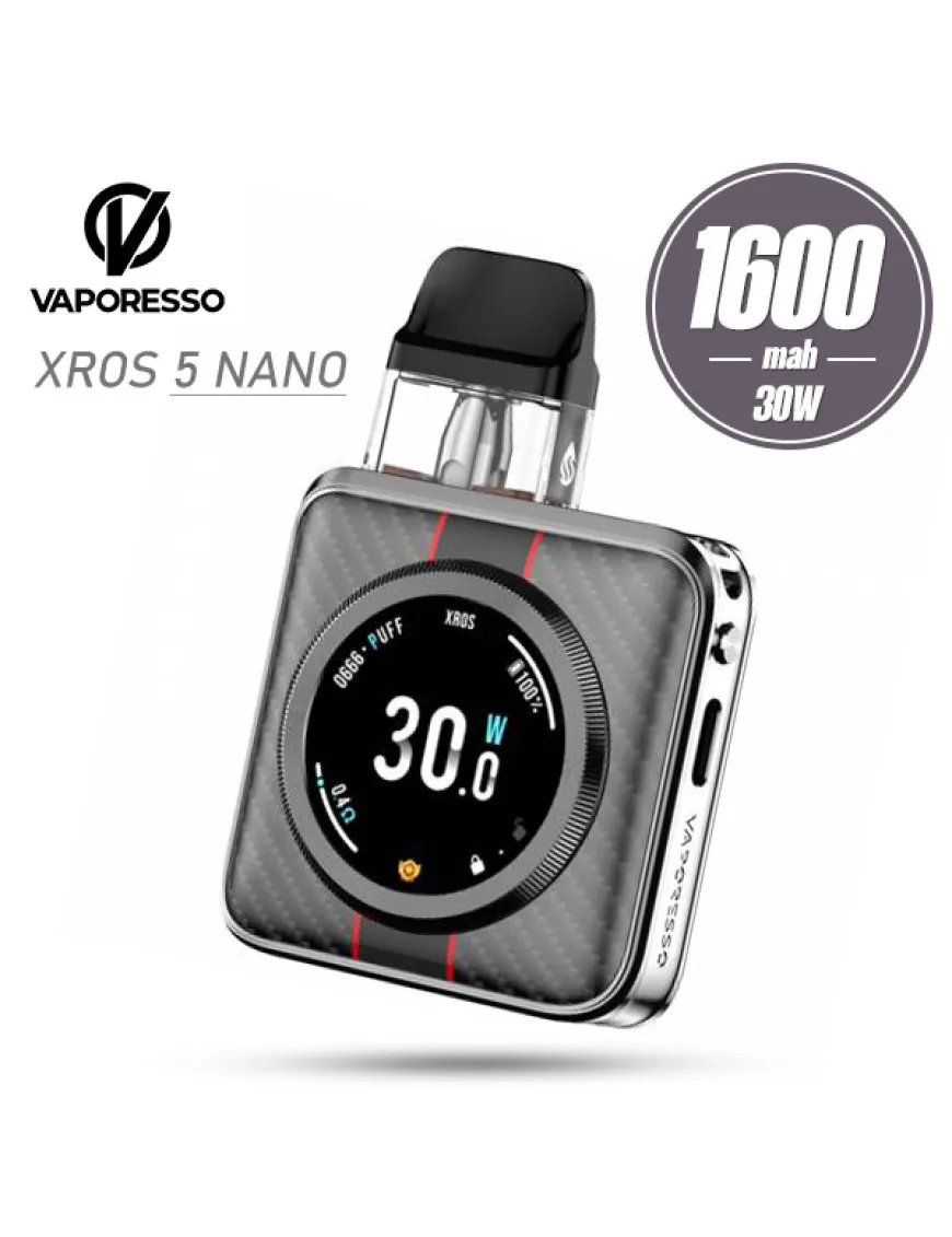 Vaporesso XROS 5 Nano Pod Kit 1600 мАч - компактная POD система, оснащенная мощным аккумулятором и цветной сенсорным экраном с разнообразными настройками. Корпус устройства выполнен из алюминиевого сплава в формате компактного квадрата с плавными скругленными углами. На лицевой стороне расположен большой круглый сенсорный дисплей с цветным интерфейсом. Экран выполнен в стиле современных смарт часов и обладает множеством функций, включая опцию смены тем оформления(доступно 29 вариантов), а также детальную статистику затяжек с возможностью устанавливать лимиты по использованию и получать напоминания о затяжках. Регулировка интенсивности затяжки реализована с помощью аккуратного ползунка на одной из боковин устройства. На другой боковине расположена кнопка активации и современный разъем USB Type-C. Питание Vaporesso XROS 5 Nano обеспечивается встроенным аккумулятором, емкостью 1600 мАч, быстрая зарядка производится при помощи разъема USB Type-C, током 2А. Активируется POD система по затяжке либо посредством нажатия универсальной кнопки, с помощью которой можно еще управлять девайсом и анимацией. Комплектуется Vaporesso XROS 5 Nano двумя картриджами XROS Series COREX 3.0 со встроенными сеточными испарителями на 0.4 и 0.8 Ом. Картриджи вмещают до 3 мл жидкости, оснащены защитой от протечек по фирменному стандарту SSS и модернизированной технологией COREX 3.0, которая обеспечивает более интенсивный вкус и увеличивает срок службы испарителя. Для заправки картриджа необходимо снять мундштук и в небольшое отверстие с обратным клапаном залить 3 мл жидкости. Так же можно использовать и другие картриджи серии XROS.