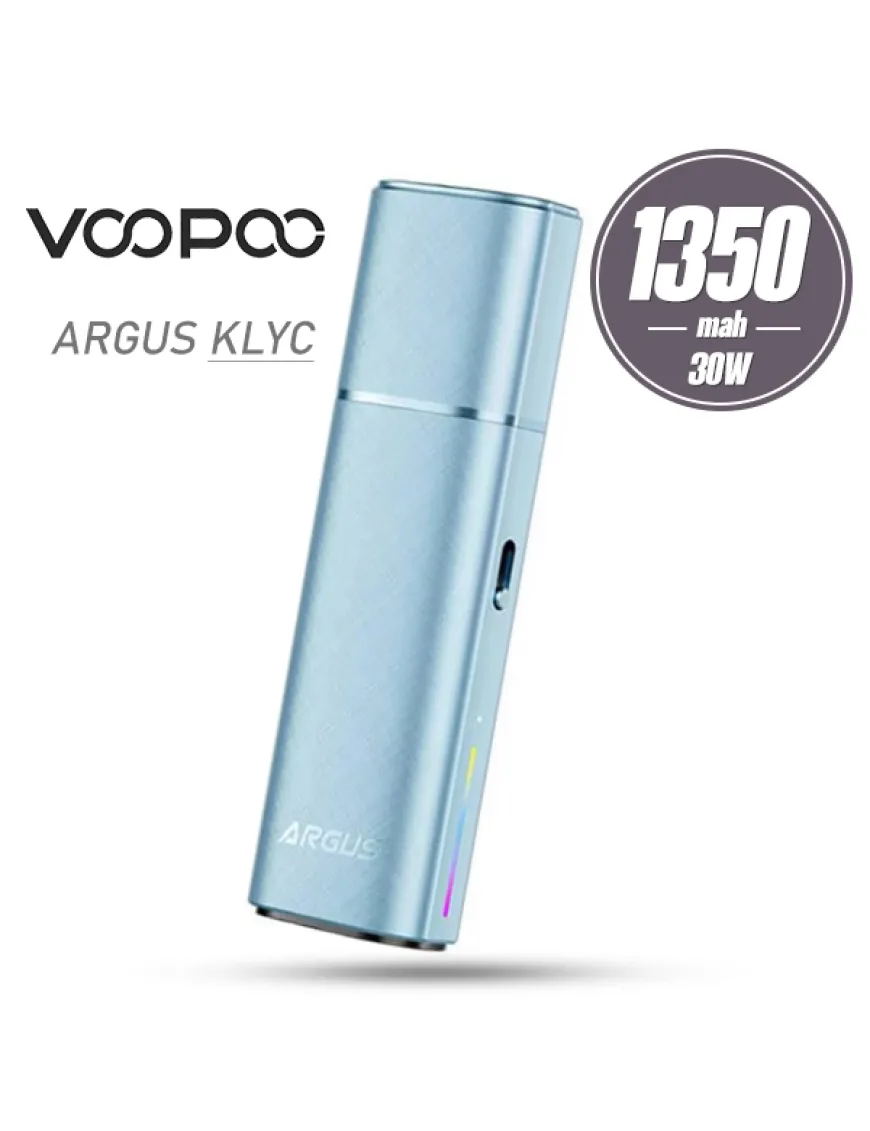 Voopoo Argus Klyc Pod Kit 1350 мАч - компактная POD система с мощным аккумулятором, автоматической подстройкой мощности и новой картриджной системой. Корпус Pod системы довольно компактный, изготовлен из алюминеевого сплава в виде приплюснотого стика с магнитным защитным колпачком. LED индикатор событий представлен в виде вертикальной RGB полосы на одной из боковых граней, там же расположен и регулятор интенсивности затяжки. Интерфейс новинки бескнопочный, активируется с помощью датчика затяжки. Питание устройства обеспечивается встроенным аккумулятором повышенной емкости 1350 мАч, мощность на выходе регулируется автоматически, в зависимости от сопротивления испарителя, в пределах от 5 до 30 Вт. Зарядка аккумулятора производится при помощи разъема USB Type-C, расположенного на боковой грани корпуса, током 1.2А. Картриджная система полностью обновлена – это расходники со встроенными испарителями на сетке Argus Top Fill Cartridge V2 с повышенным ресурсом работы по авторской технологии COSM CODE 2.0, которая, по заверениям производителя, увеличивает ресурс встроенного испарителя до 30 дней. Резервуар имеет боковую, быстродоступную заправку и может вместить в себя до 3 мл жидкости. Voopoo Argus Klyc полностью совместим в предыдущими картриджами серии Argus.