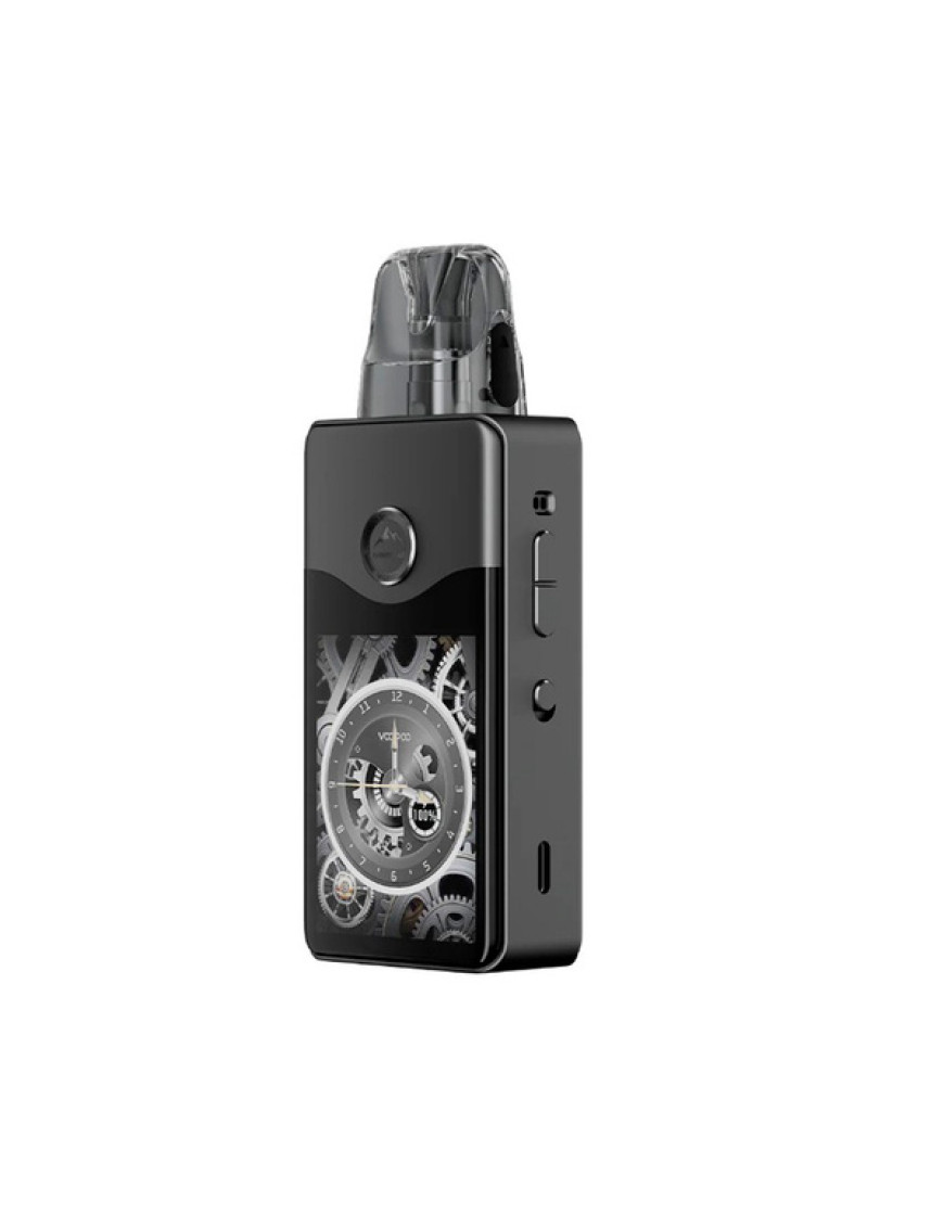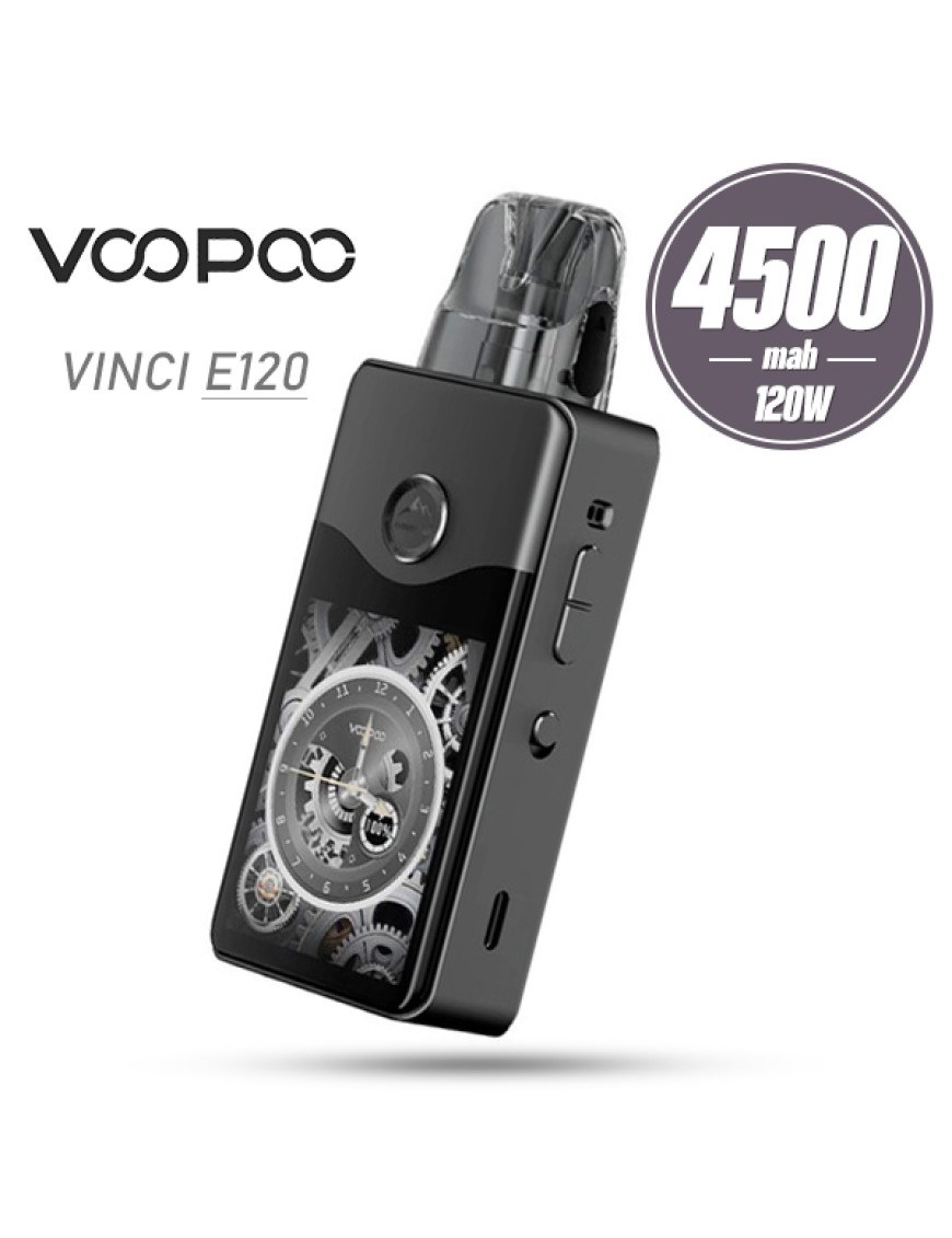 Voopoo Vinci E120 Pod Kit 4500 мАч - Pod система средних размеров, с большим дисплеем, мощным встроенным аккумулятором и укомплектованная новой картриджной системой на испарителях PnP X. Корпус устройства больше напоминает бокс мод и выполнен из алюминиевого сплава в виде прямоугольника с закругленными углами и гранями. Дисплей и кнопка активации расположены на лицевой стороне девайса, кнопки пользовательской настройки, ползунок блокировки устройства и современный разъем для зарядки размещены на одном из боковых торцов. На другом торце расположен аккуратный ползунок регулировки интенсивности затяжки. Питание Voopoo Vinci E120 обеспечивается встроенным аккумулятором, емкостью 4500 мАч, быстрая зарядка аккумулятора производится при помощи разъема USB Type-C, током 2А. Самое главное украшение Pod системы - это цветной дисплей с диагональю 2.4 дюйма. Отличительной особенностью экрана является наличие нескольких скринсейверов в виде стилизованных циферблатов, каждый из которых станет доступен по достижению определенного количества сделанных пользователем затяжек. Картриджная система новая - это резервуары на сменных испарителях серии PnP X, объемом 5 мл, с боковой, быстродоступной заправкой.