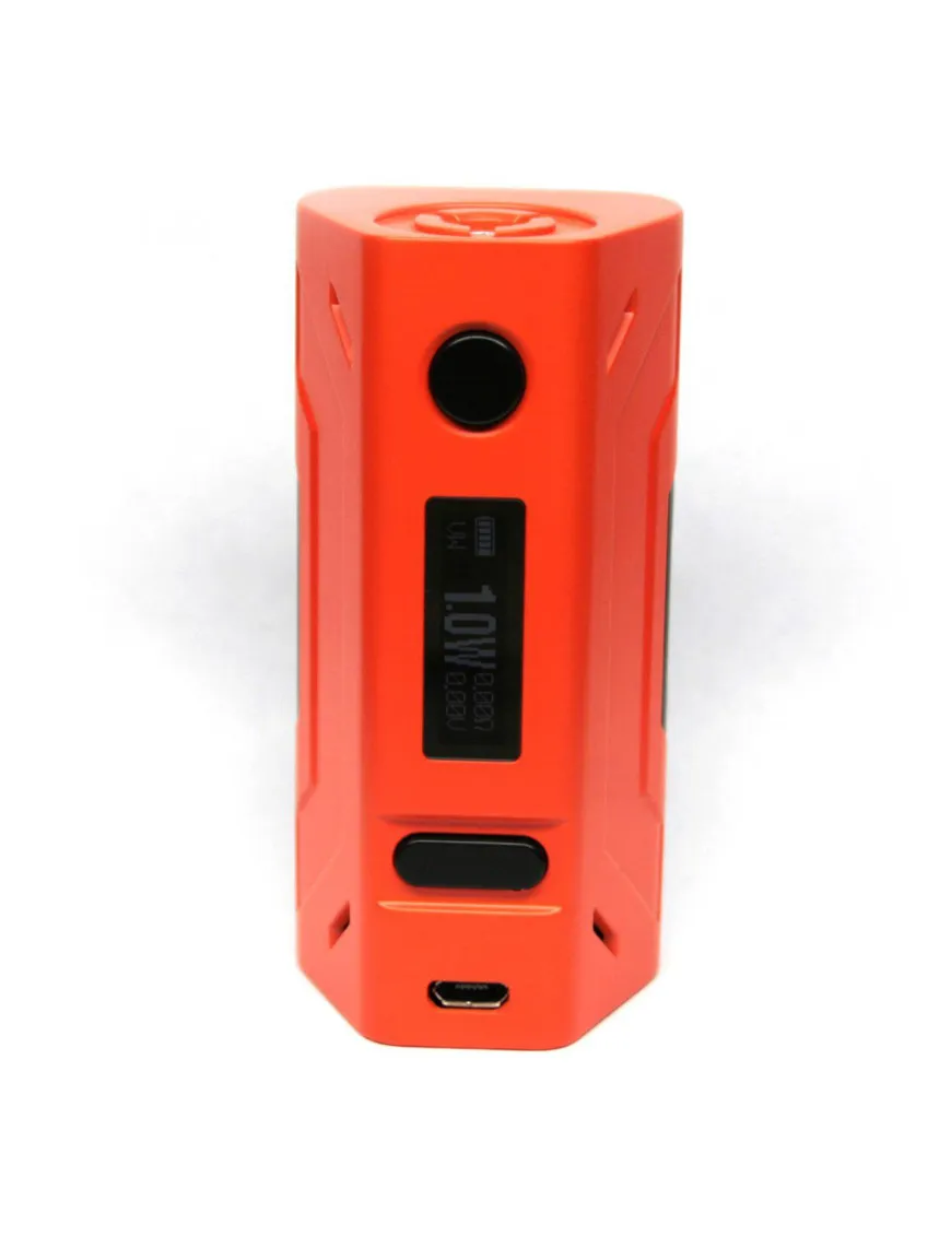 Внешне модель напоминает классический RX 2/3, но с более приятными эргономичными особенностями корпуса. Из видимых отличий — наличие вентиляционных отверстий в верхней и нижней части боксмода, более строгие и обтекаемые формы граней корпуса, а также приятное на ощупь и стойкое финишное покрытие. Плата устройства оснащена целым списком необходимых защит — от короткого замыкания, низкого сопротивления, переполюсовки элементов питания, и перегрева.