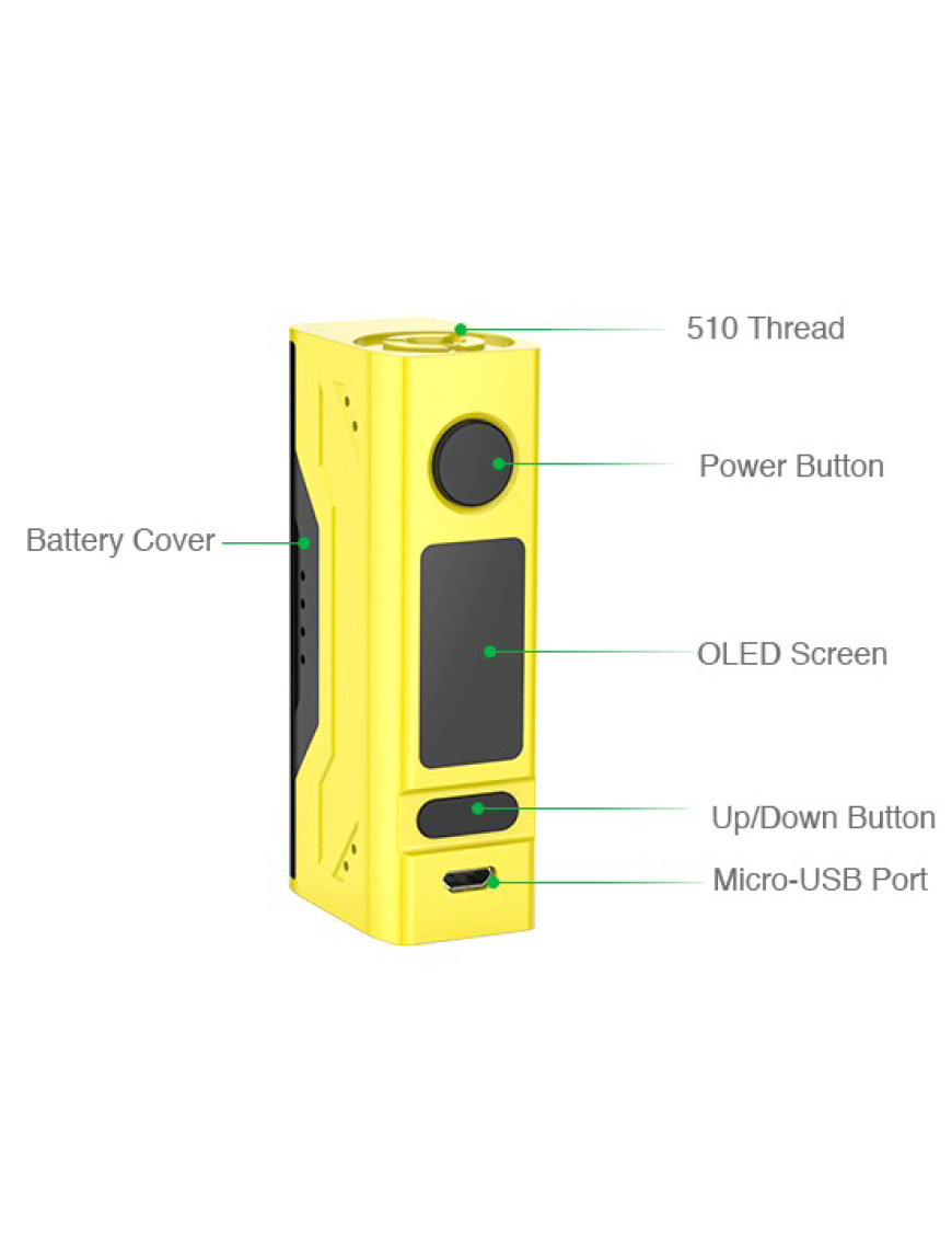 Питание боксмода осуществляется от одного аккумулятора 18650 (в комплект не входит), развивая мощность до максимальных 80 Вт.