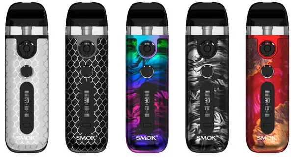 Smok Novo 5 900 Pod Kit 900 мАг - очередная продвинутая Pod система от компании Smoktech. Девайс по традиции укомплектовали полноценно регулируемой платой и парой дополнительных полезных "плюшек". Форм-фактор устройства - это такой же приплюснутый вытянутый стик с закругленными гранями. На корпусе появилась круглая кнопка активации, чуть выше нее находится знакомое колесико регулировки затяжки, а ниже экран, который стал более удобным. В батарейном блоке устройства установлен аккумулятор с емкостью 900 мАч, заряжающийся при помощи разъема USB Type-C током с силой до 0.78 А. Устройство активируется как по нажатию на кнопку Fire, так и непосредственно в момент затяжки. Последняя регулируется вращением специального колесика спереди. Также доступна настройка мощности в диапазоне 5 - 30 Вт с помощью кнопки под монохромным дисплеем. Картридж Smok Novo 5 вмещает 2 мл жидкости, стандарт для подобных устройств, заправка осуществляется сверху, достаточно снять загубник и заполнить картридж жидкостью. Испаритель встроенный, выполненный на сетке, сопротивлением 0.7 Ом, что даст хорошую вкусопередачу и средней тугости затяжку.