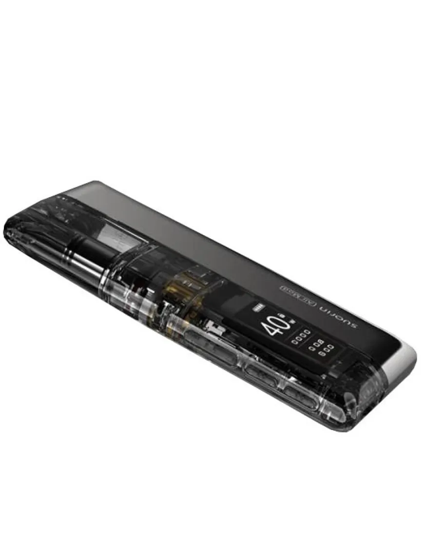Изюминкой облика девайса стало подчеркнутое деление корпуса пополам по вертикали, при этом металлическая половина из цинкового сплава осталась данью элегантности предыдущих моделей, а прозрачная пластиковая часть представляет современный взгляд на дизайн. Просматривающаяся через оболочку электронная начинка выступает экзотическим элементом декора. Аккумуляторная батарея емкостью 1500 мАч не только существенно увеличивает автономность, но и позволяет реализовать расширенную, по сравнению с предшественниками, функциональность. Восстановление потенциала источника питания осуществляется посредством порта USB Type-C в торце, рассчитанного на ток зарядки 1А.