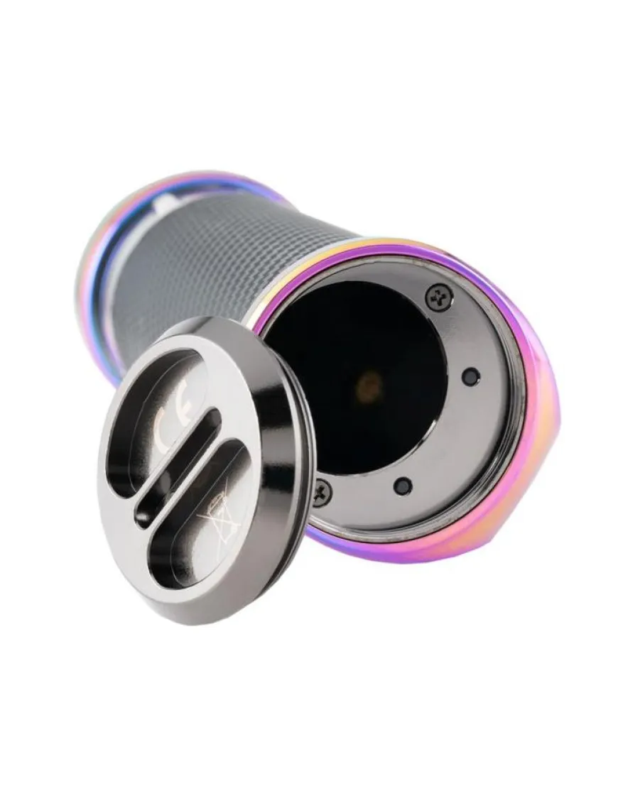 Дизайном устройство напоминает Suorin Trio 85 - обтекаемый цилиндрический силуэт 120 х 34.6 х 31.2 мм с металлической рамой и вставкой под карбон.