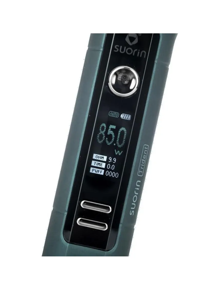 В верхней части корпуса Suorin Trident 85W предусмотрена двойная регулировка интенсивности тяги в виде вращающегося кольца. Комплектный картридж получил вместительность до 4.4 мл, нижнюю заправку и поддержку сменных испарителей на сетке серии TRI. Отдельно приобретается обслуживаемая база TRI RBA.