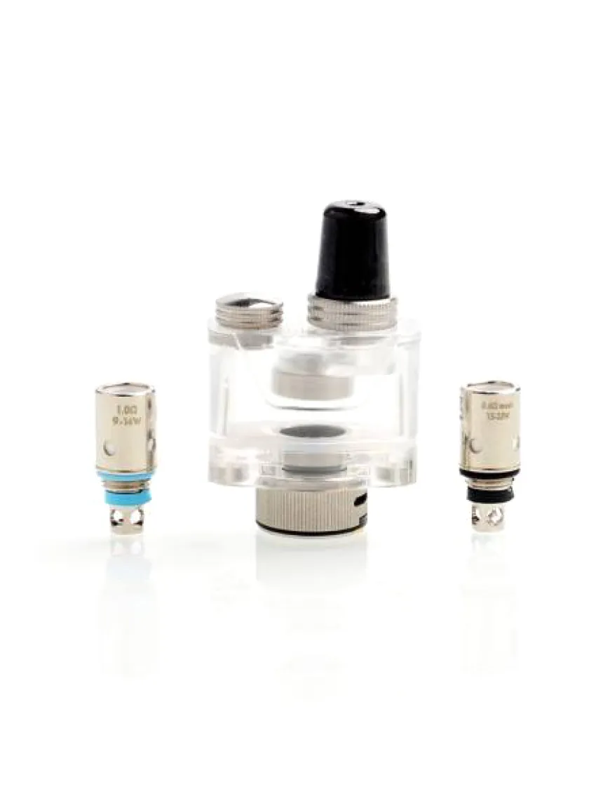 В батарейном блоке картридж удерживается при помощи магнитных коннекторов, благодаря чему процесс замены испарителей максимально простой. Производитель предлагает использовать два варианта испарителей собственного производства сопротивлением 0,6 и 1,0 Ом, причем оба варианта на сетке, благодаря чему вкусопередача будет на высшем уровне.