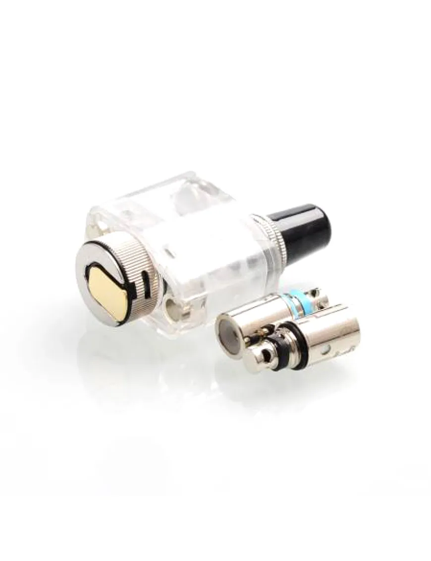 В батарейном блоке картридж удерживается при помощи магнитных коннекторов, благодаря чему процесс замены испарителей максимально простой. Производитель предлагает использовать два варианта испарителей собственного производства сопротивлением 0,6 и 1,0 Ом, причем оба варианта на сетке, благодаря чему вкусопередача будет на высшем уровне.