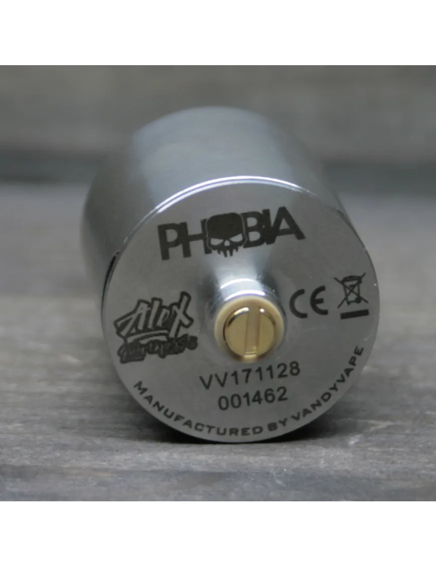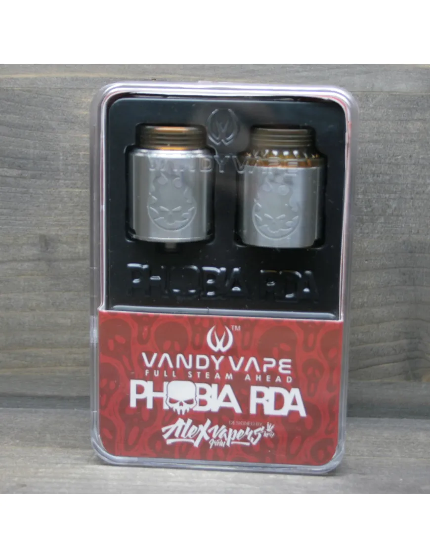 Компания Vandy Vape совместно с обзорщиком Alex from VapersMD выпустили новое устройство под названием Phobia RDA. Представлена в популярных цветах. Очень лаконичный дизайн. Корпус выполнен из нержавеющей стали. Купол со сферической обработкой. На юбке присутствует гравировка в виде огненного черепа.