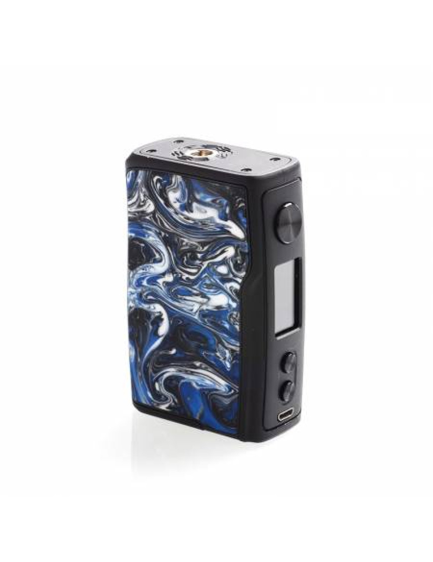 Корпус мода выполнен из качественного пластика со вставками из эпоксидной смолы с уникальным рельефом и узором. Одной из отличительных особенностей данного боксмода является возможность кастомизации внешнего вида при помощи сменных боковых панелей, выполняющих одновременно и функцию крышки аккумуляторного отсека на магнитном креплении.