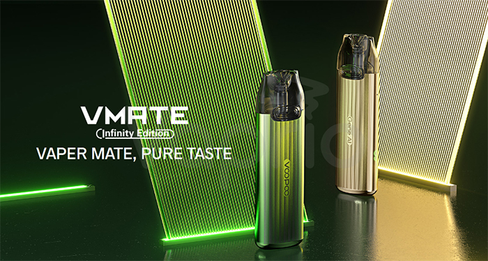 VooPoo VMATE Infinity Edition 900 мАч - Компактная POD система, оснащенная емким аккумулятором, рассчитанная на установку сменных картриджей серий VMATE и V.THRU. Основное отличие Voopoo VMATE Infinity Edition POD kit от предыдущей версии – это оформление девайса, так как форм-фактор корпуса решили не менять. Внешний вид устройства стал немного агрессивнее и более привлекательным – появились вертикальные полосы и оригинальные цвета. Размеры POD системы достаточно скромные – 95.5 х 28.5 х 15 мм, причем вес, за счет использования при производстве алюминиевого сплава, небольшой. Питание VMATE Infinity Edition обеспечивается встроенным аккумулятором емкостью 900 мАч, который заряжается через разъем USB Type-C, током 1А. Устройство работает под управлением чипсета GENE.AI, благодаря которому выходная мощность составляет около 17 Ватт. Активация девайса производится только при затяжке (никаких элементов управления нет). Для того чтобы контролировать уровень зарядки АКБ, на боковой грани имеется светодиодный индикатор, выполненный в виде знака бесконечности. Pod система комплектуется представленным ранее картриджем Voopoo VMATE V2 со встроенным испарителем на сетке, сопротивлением 0.7 Ом. Картриджи этой серии полностью совместимы с устройствами серий VMATE и V.Thru. Испарители внутри картриджей изготовлены по технологии ITO, призванной улучшить вкусопередачу путем более ровного распределния тепла по сетке. Настройки интенсивности затяжек, увы, по-прежнему нет, а обдувы расположены по бокам. Для того чтобы заправить картридж, его необходимо вынуть из батарейного блока, открыть на боковой поверхности силиконовую заглушку и залить 3 мл жидкости.
