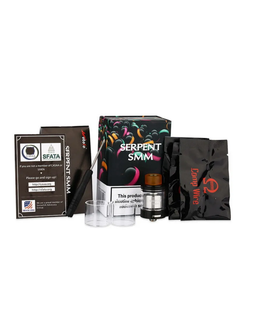 Wotofo Serpent SMM - обслуживаемый бакомайзер от компании Wotofo, созданный в сотрудничестве с западными обзорщиками Suck My Mod. Бак внешне напоминает предыдущую разработку компании Wotofo, The Troll RTA, но при этом использует основы конструктива базы, заложенные в Serpent от той же Wotofo.
