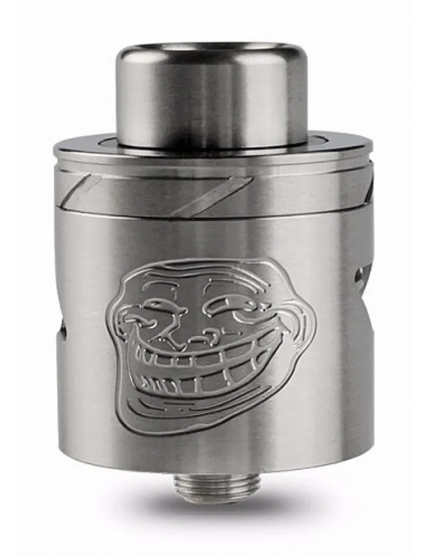 Дрипка Troll 22 RDA V2 станет явным фаворитом среди любителей общения на форумах и в соцсетях – на устройстве выгравирован главный символ сетевых троллей. Конечно же, это не главное достоинство этого стильного и функционального устройства. Дрипка отличается массивным диаметром – 22 мм. Высота устройства, вместе с дрип-типом, достигает 21,5 мм. Устройство надежно защищено от коррозии, ведь корпус дрипки изготовлен из нержавеющей стали.