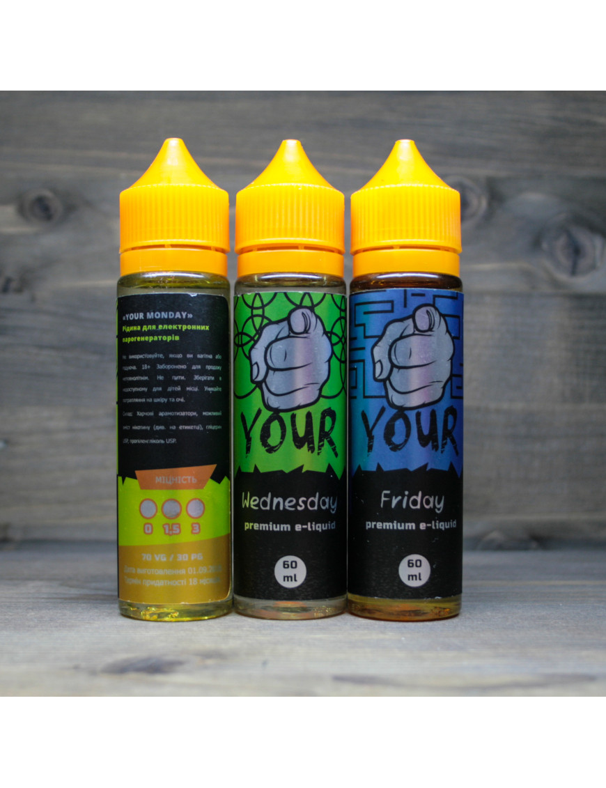 Купить набор жидкостей для электронных сигарет Your - 3х60ml 1,5mg по доступной цене на сайте cloudy.kyiv.ua можно с доставкой в любой город Украины.