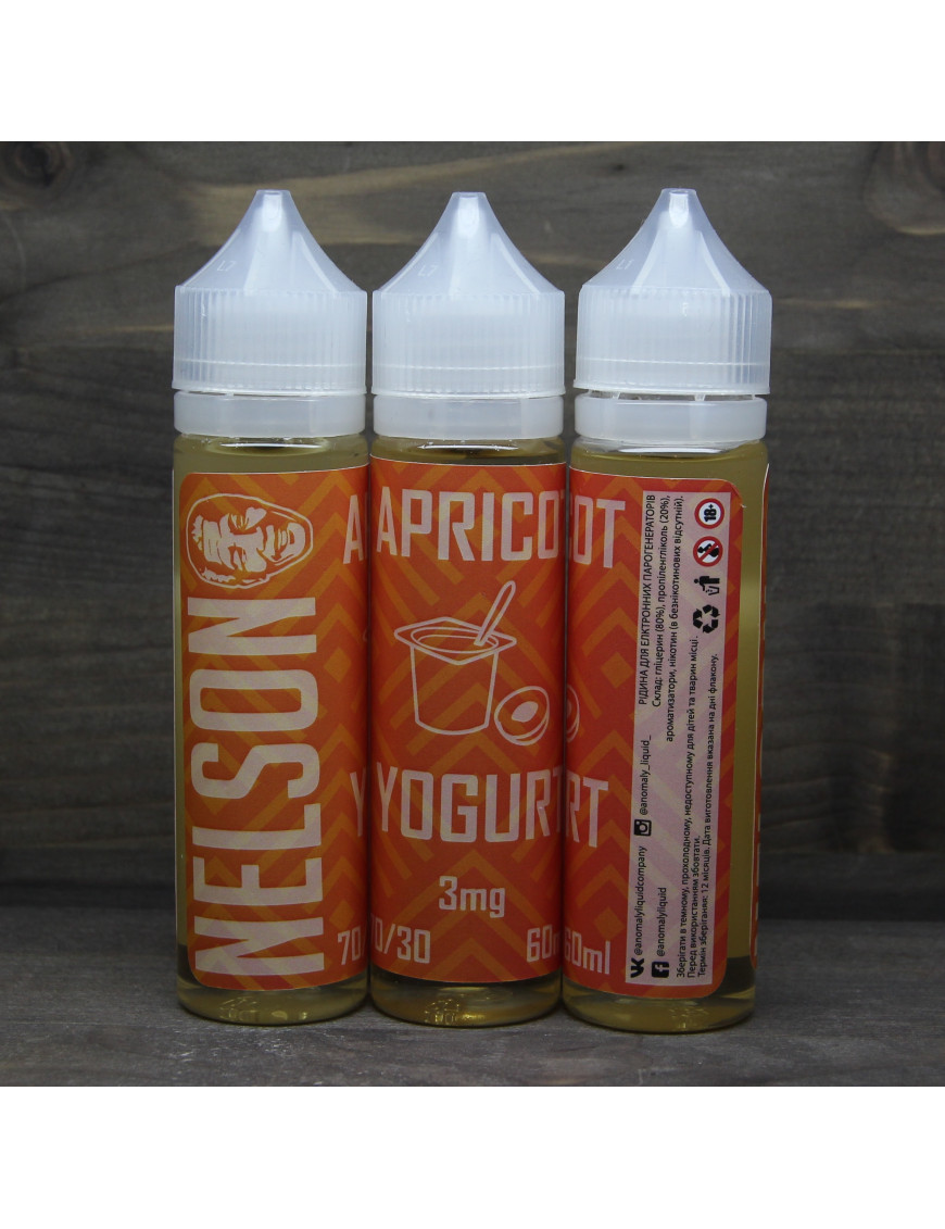 Купить жидкость для электронных сигарет Nelson - Apricot Yogurt 1,5mg 60ml по доступной цене на сайте cloudy.kyiv.ua можно с доставкой в любой город Украины. Следите за акциями и покупайте дешевле любимые жижы.