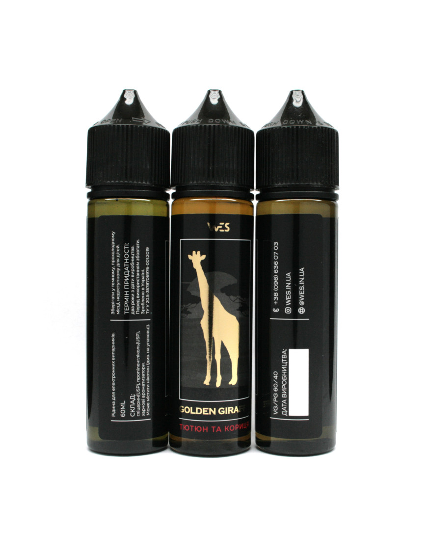 Жидкость для электронных сигарет на основе органического никотина WES - Golden Giraffe Тютюн та Кориця 60ml 6mg