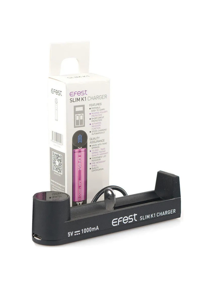 - 1 x универсальное зарядное устройство Efest SLIM K1;