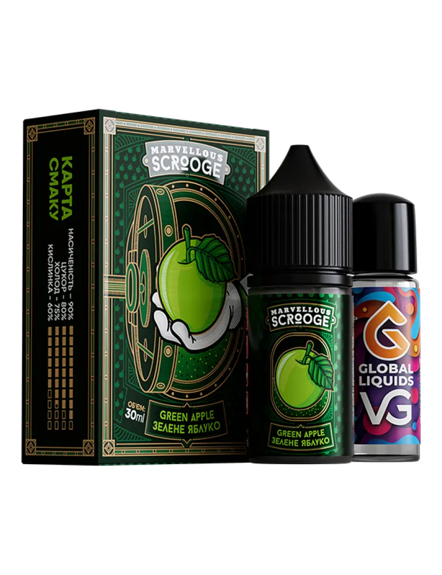 Жидкость для электронных сигарет Marvellous - {Scrooge} Green Apple 30ml 50mg имеет в составе: