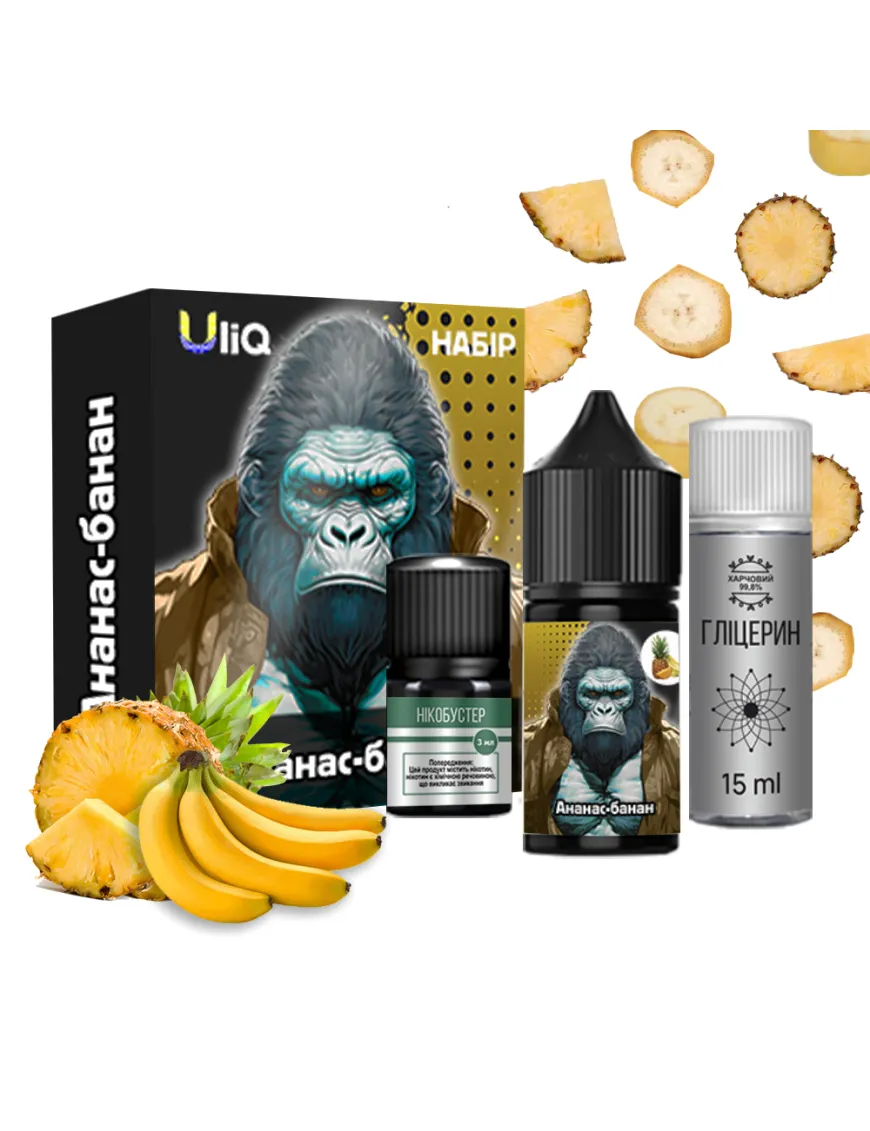 Жидкость для электронных сигарет Uliq - Ананас Банан 30ml 50mg имеет в составе:
