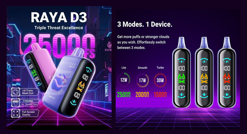 При каждом вдохе устройство доставляет насыщенный аромат благодаря разнообразным вкусам. Благодаря простому дизайну серии Raya, без кнопок, заправок или обслуживания, вы можете наслаждаться удобством в любой момент. Просто распакуйте устройство и наслаждайтесь неповторимым вкусом. Elfbar Raya D3 - лидер среди одноразовых вейпов по количеству затяжек и содержанию. Содержит до 5% никотина, обеспечивая приятный эффект при каждом вдохе. Максимальная производительность в 25 000 затяжек гарантирует продолжительное удовлетворение использования. Поддерживает удобный Type-C зарядный кабель, совместимый с другими электронными устройствами, обеспечивая быструю и эффективную зарядку 850 мАч батареи. Эргономичный дизайн обеспечивает максимальное удовольствие от использования. Емкость 23 мл позволяет вам наслаждаться вейпингом в течение всего дня. Датчик уровня жидкости обеспечивает контроль запаса жидкости в устройстве.