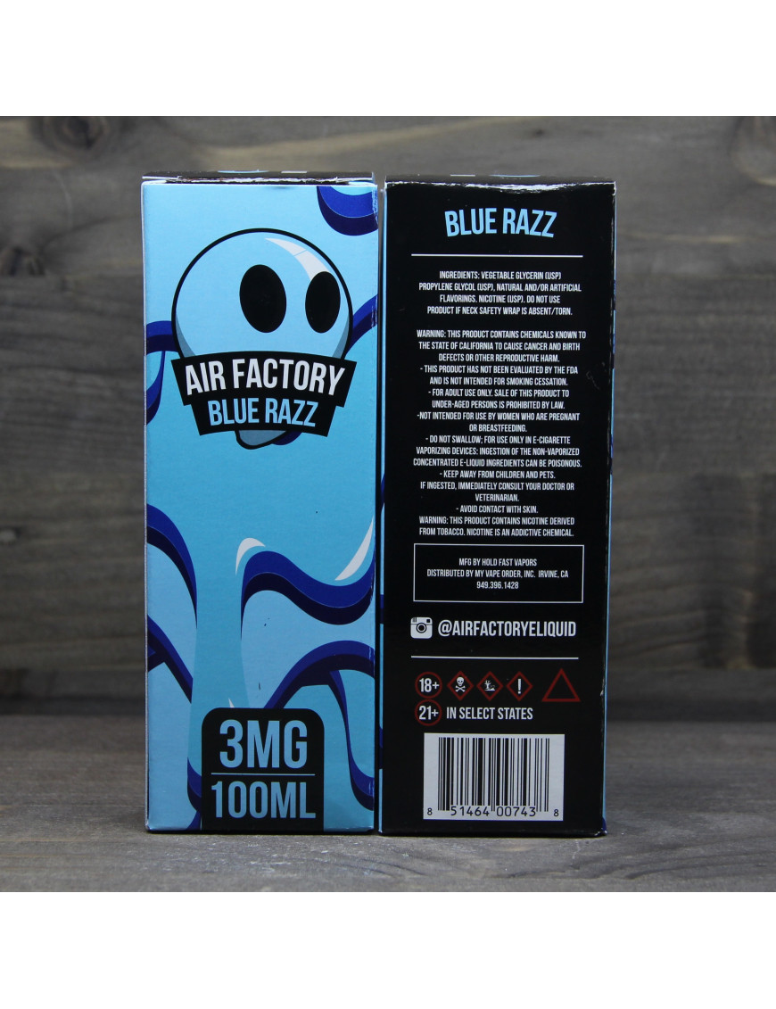 Жидкость для электронных сигарет Air Factory - Blue Razz 100ml 3mg имеет в составе: