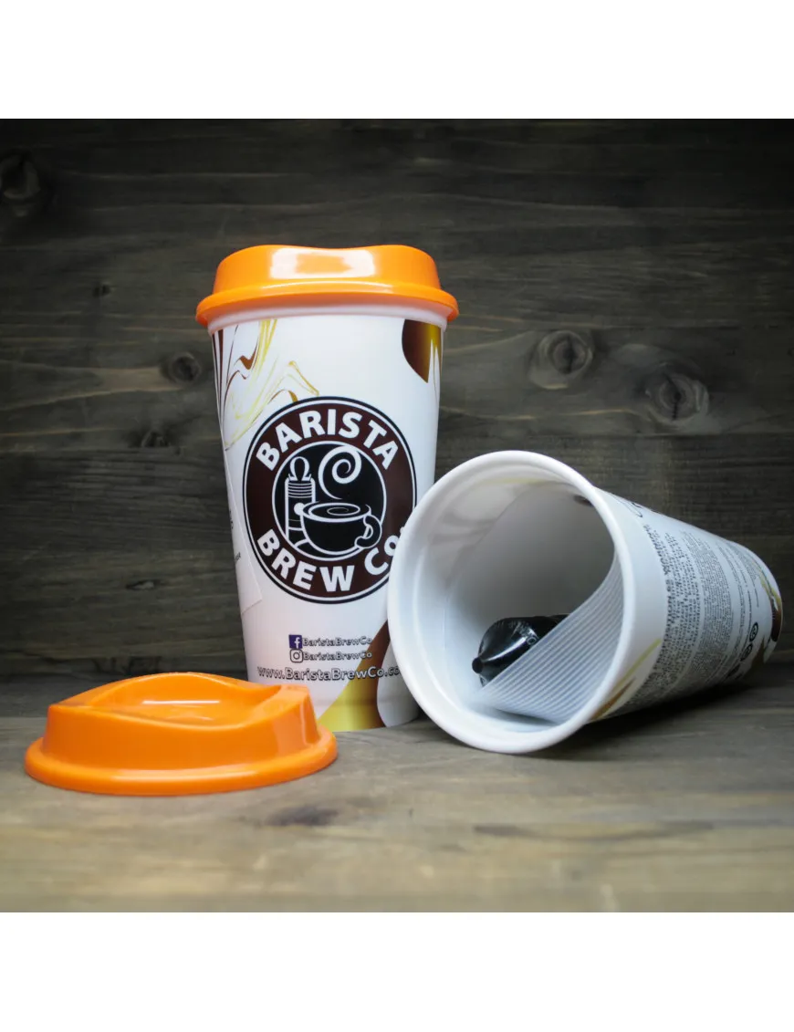 Жидкость поставляется в уникальной упаковке - брендированный стакан с крышкой. Дизайн стакана и цвет крышки зависит от выбранного вкуса. Внутри стакана жидкость и резиновый чехол с нанесенным логотипом, для комфортного использования стакана с горячими напитками.