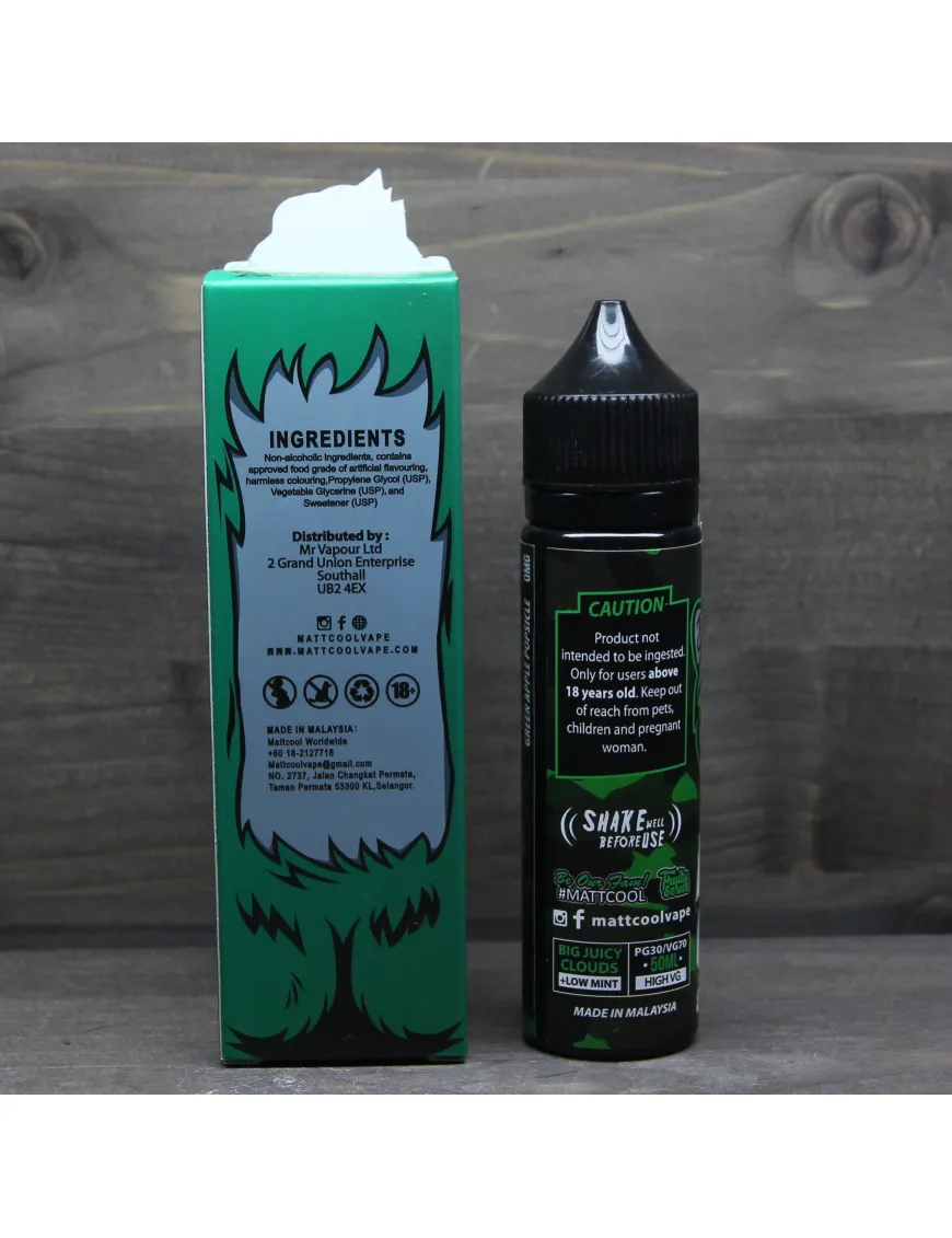 Зеленое яблоко смешано с ледяным эскимо со сладко-кислым вкусом.На вдохе явный вкус яблока,за ним идет сладость и на выдохе кислинка.