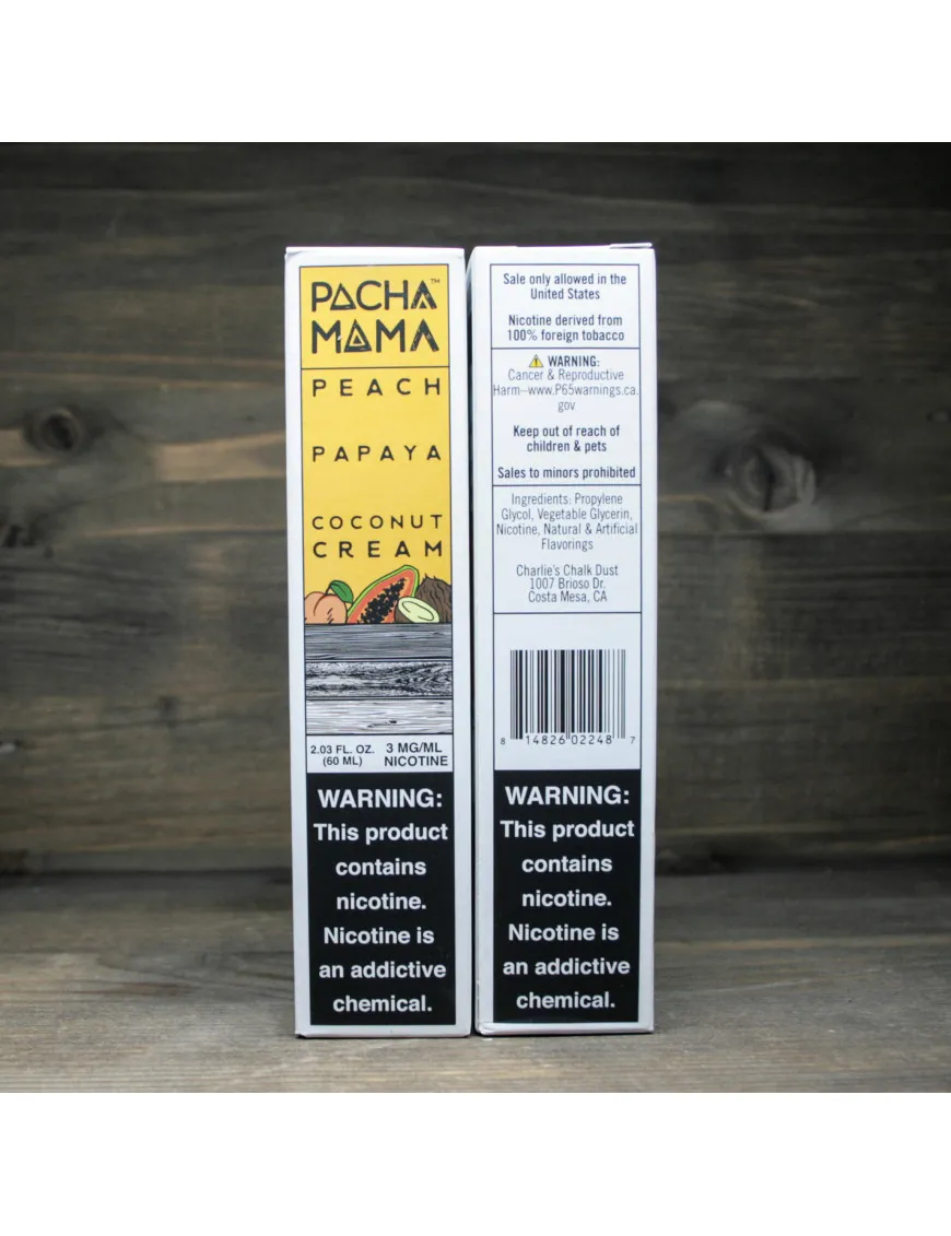 Приготовленные опытными миксологами из Charlie’s Chalk Dust, жидкости PachaMama вышли на рынок в 2016 году и были признаны бесценными жидкостями с фруктовым ароматом.