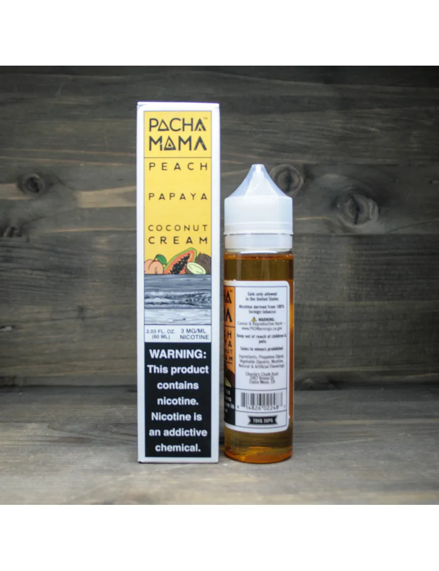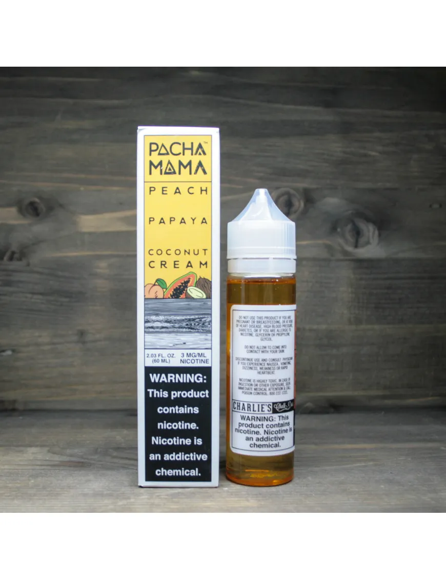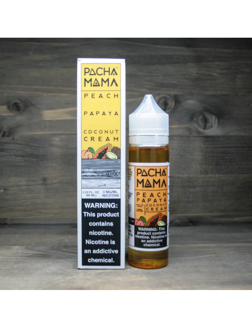 Купить жидкость для электронных сигарет PachaMama - Peach Papaya Coconut Cream 3 mg 60 ml по доступной цене на сайте cloudy.kyiv.ua можно с доставкой в любой город Украины.