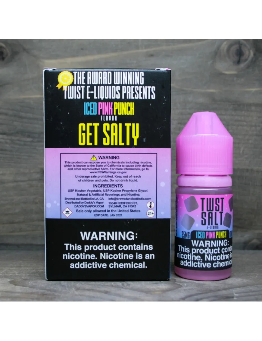 Жидкость для электронных сигарет на солевом никотине Twst Salt - Iced Pink Punch 35 mg 30 ml