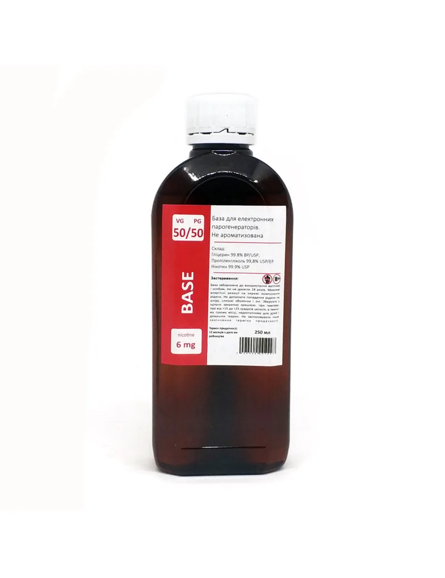 База для самостоятельного замеса жидкости для вейпов. Все ингредиенты соответствуют стандартам качества. В составе равное количество глицерина и пропиленгликоля. Количество никотина в жидкости составляет 6мг.