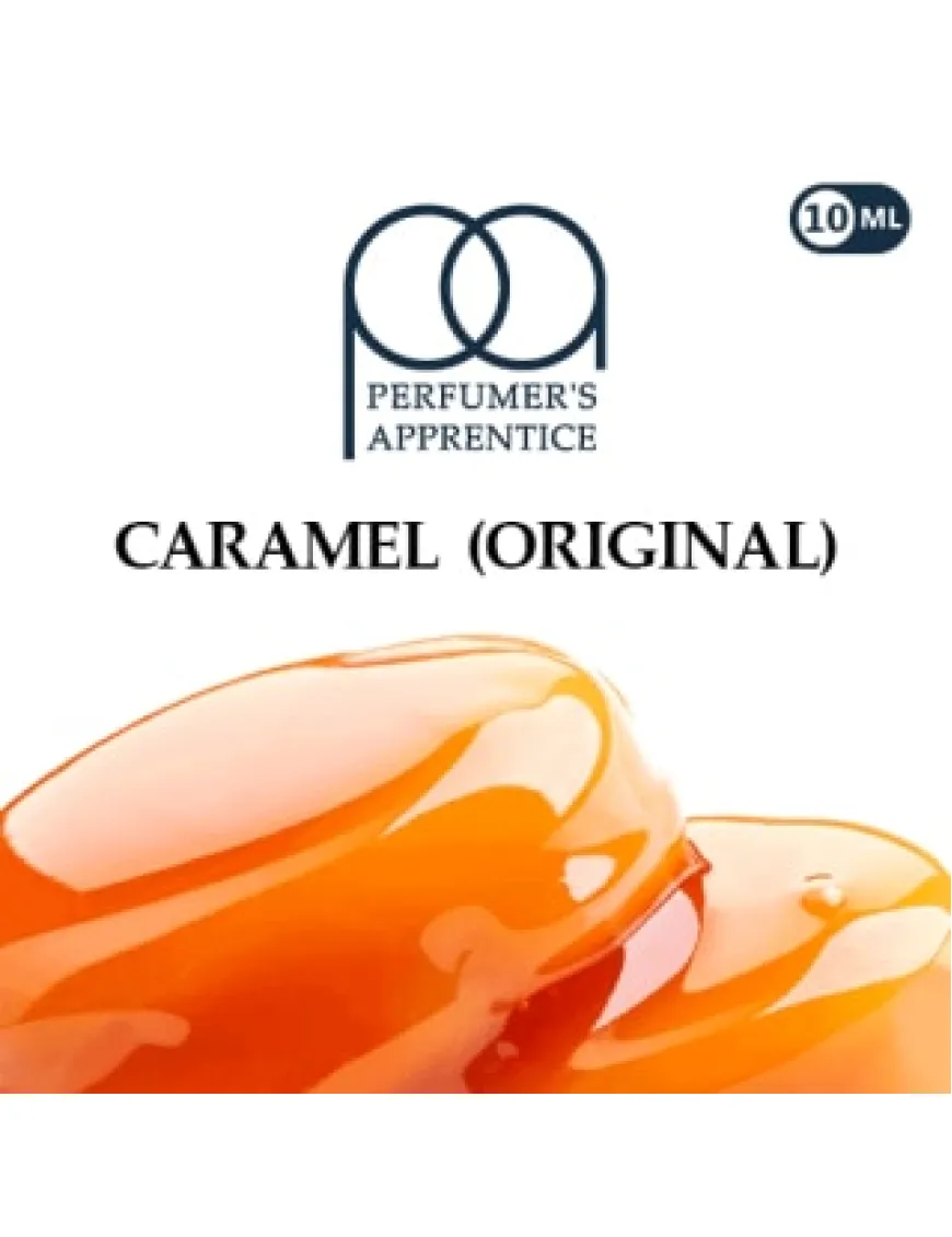 В состав TPA Caramel (Original) входят: натуральные и искусственные добавки, пропилен гликоль, вода, кукурузный сироп, краситель «Карамель». Содержит ацетоин и ацетил пропионил.